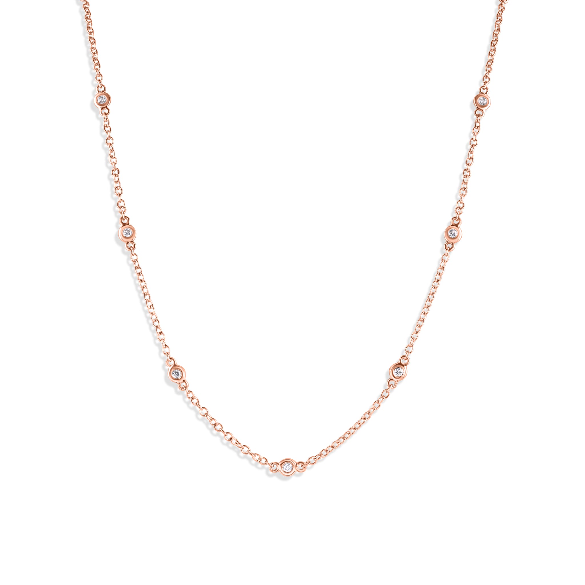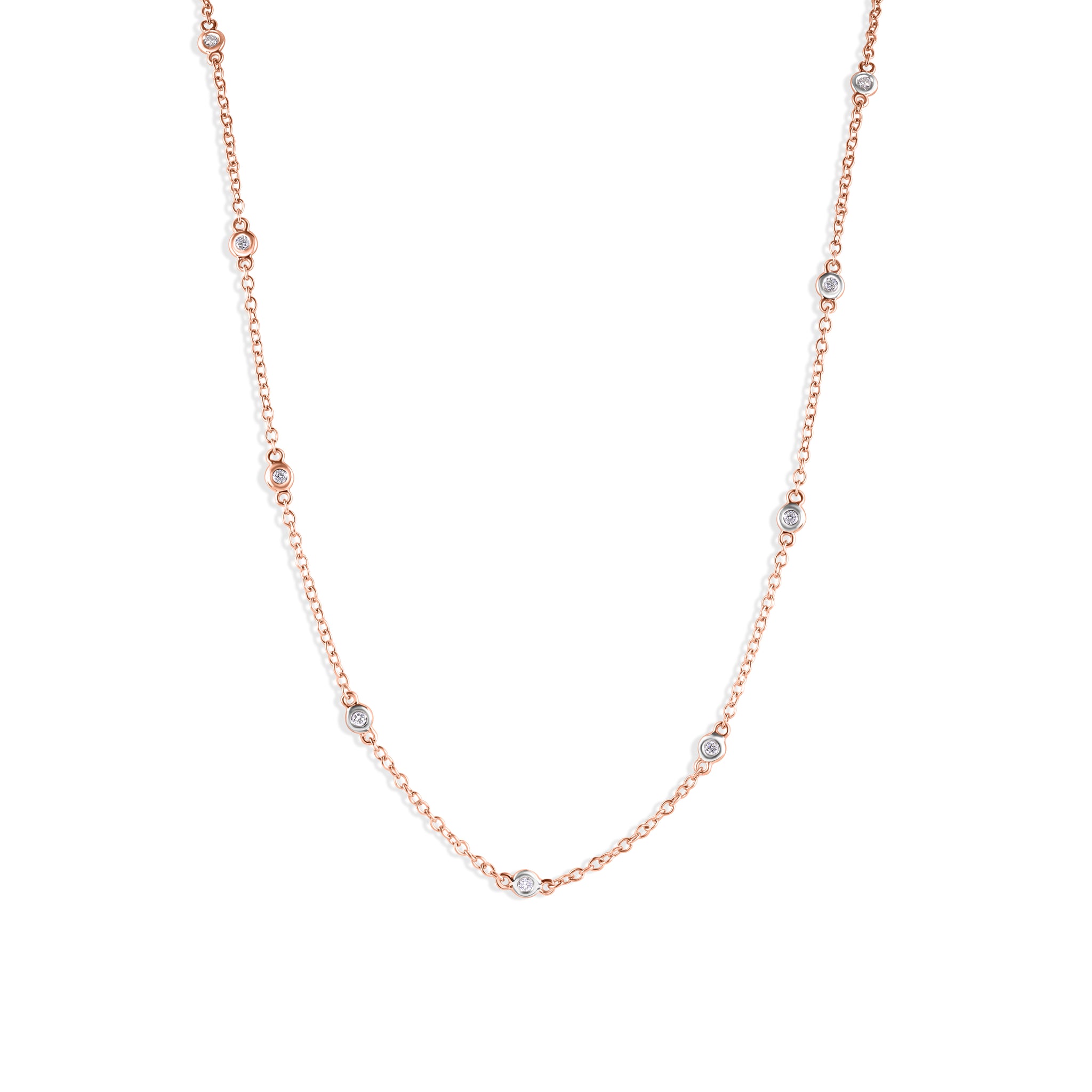 -ND443-23RC 1 8K Rose Gold Diamond Chain 16+18 inch with Bezels 0.24ct Diamonds Of G-H Color, SI1 Clarity.
