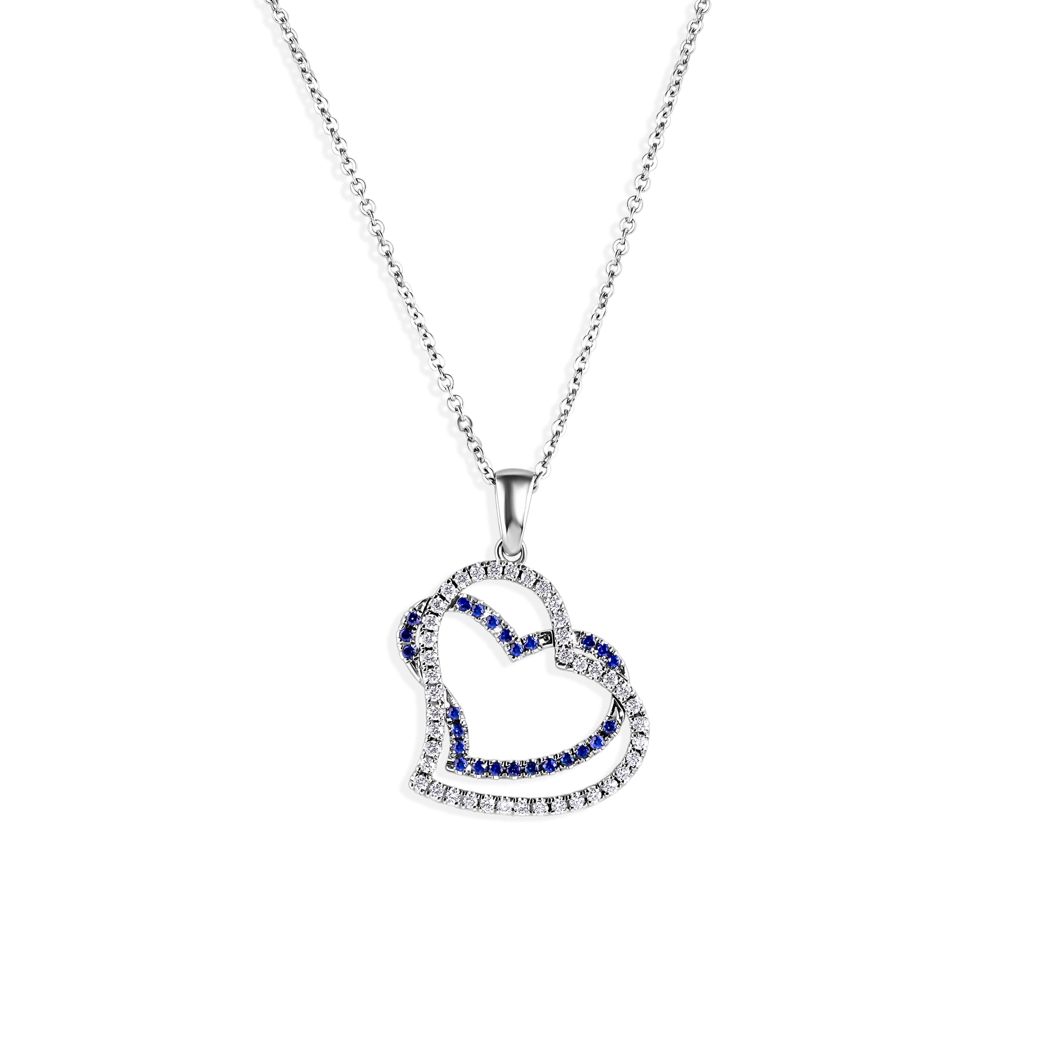 -18K White Gold Custom Designed Ladies Pendant With 25 Pave Set Ceylon Sapphires Totaling 0.25ct & 42 Pave Set Diamonds Totaling 0.28ct Of F Color, VS1 Clarity With 18 Inch, 1.66-1.77 Grams 14K White Gold Rolo (Chain Included)