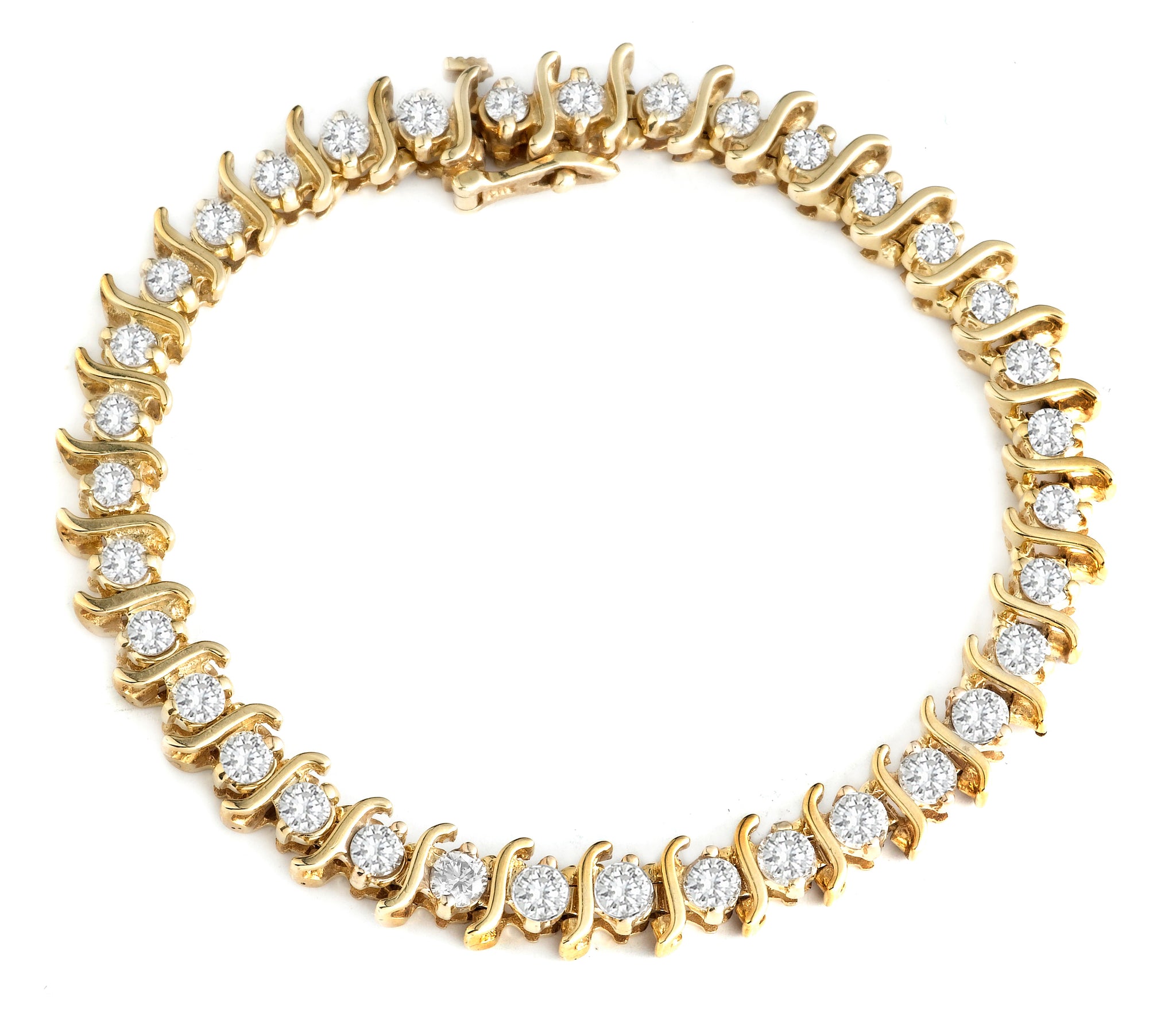 S-Shape Diamond Tennis Bracelet in 14K Yellow Gold