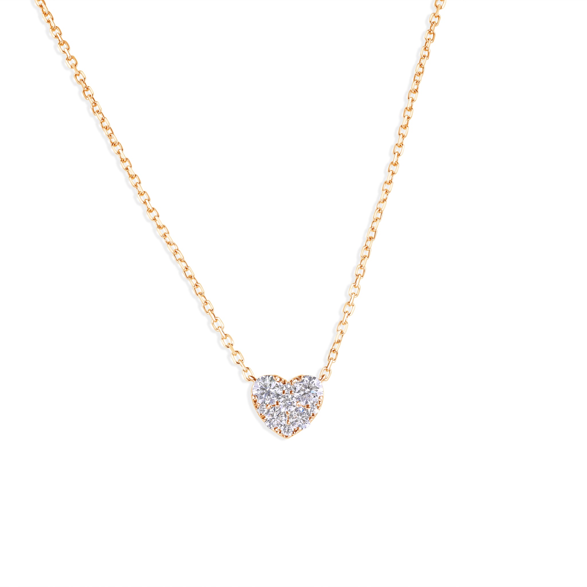 -14K Yellow Gold Heart Necklace With 0.63ct Round Brilliant Diamonds Of G Color, VS1-VS2 Clarity