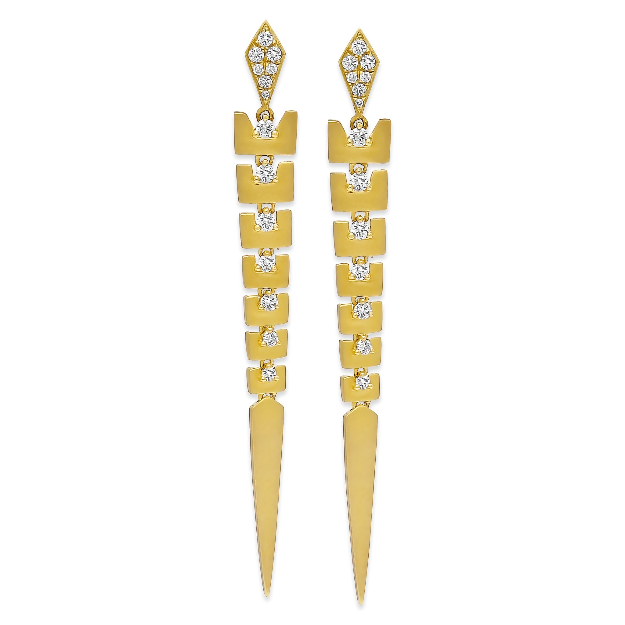 18 Karat Yellow Gold Earrings With 24 Round Diamonds Totaling 0.48ct Of G-H Color, SI1 Clarity
