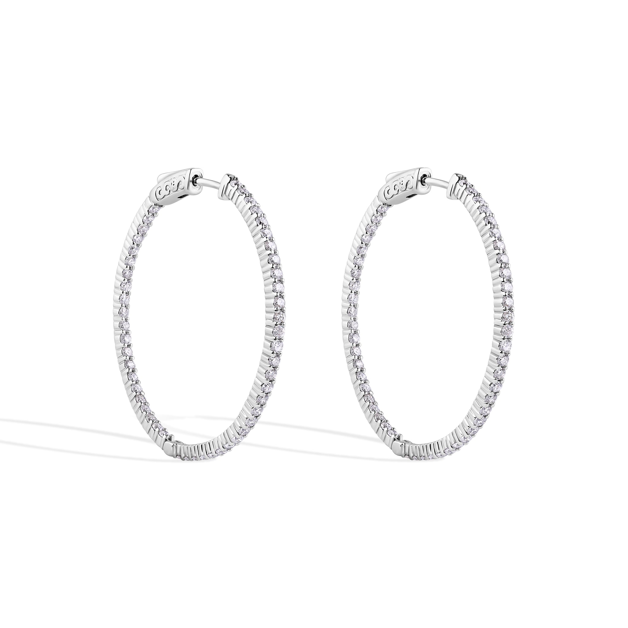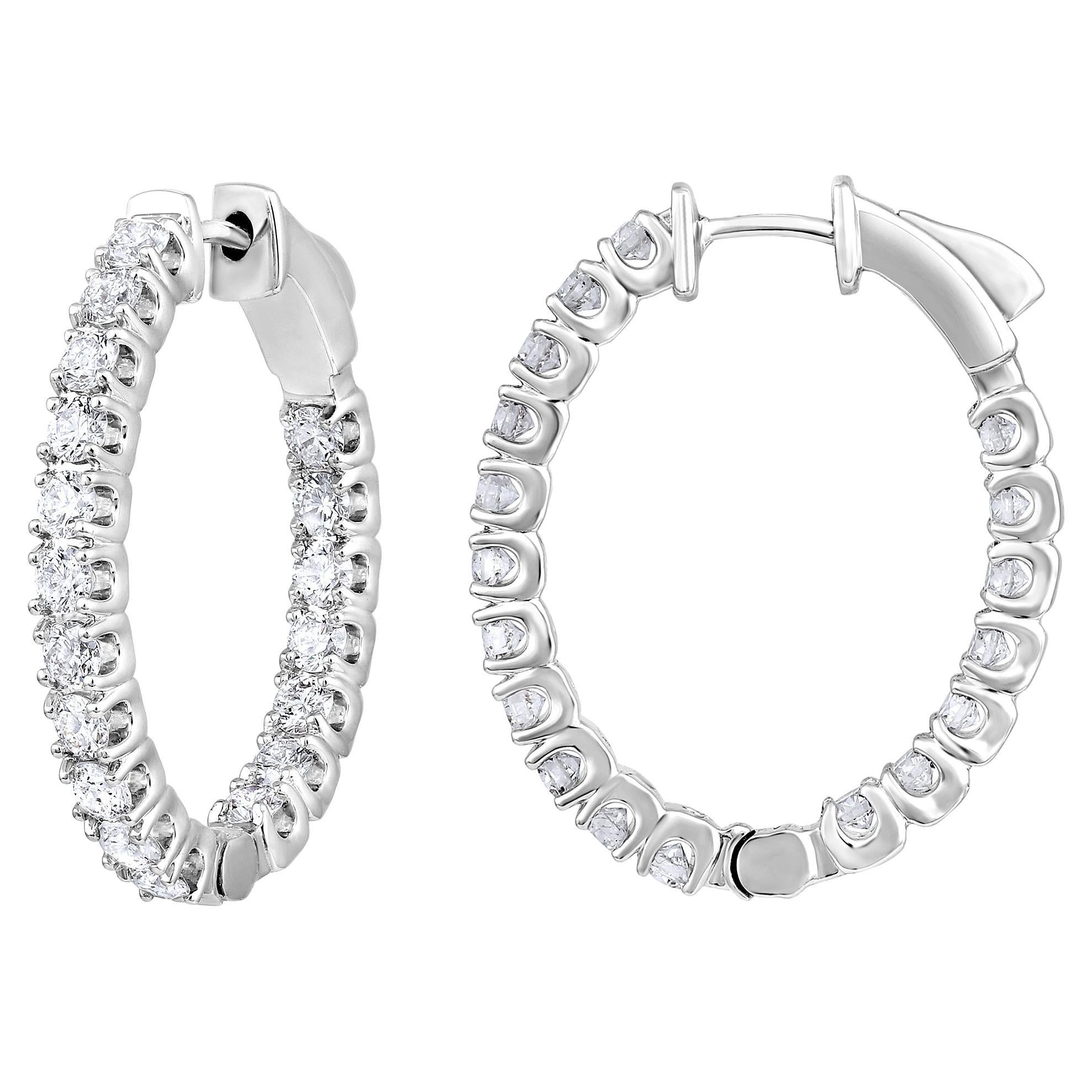 -E42W26 14k White Gold Diamond Hoop Earrings With 26 Round Brilliant Diamonds Totaling 2.79ct Of G-H Color, VS2-SI1 Clarity Oval 17mm X 20mm