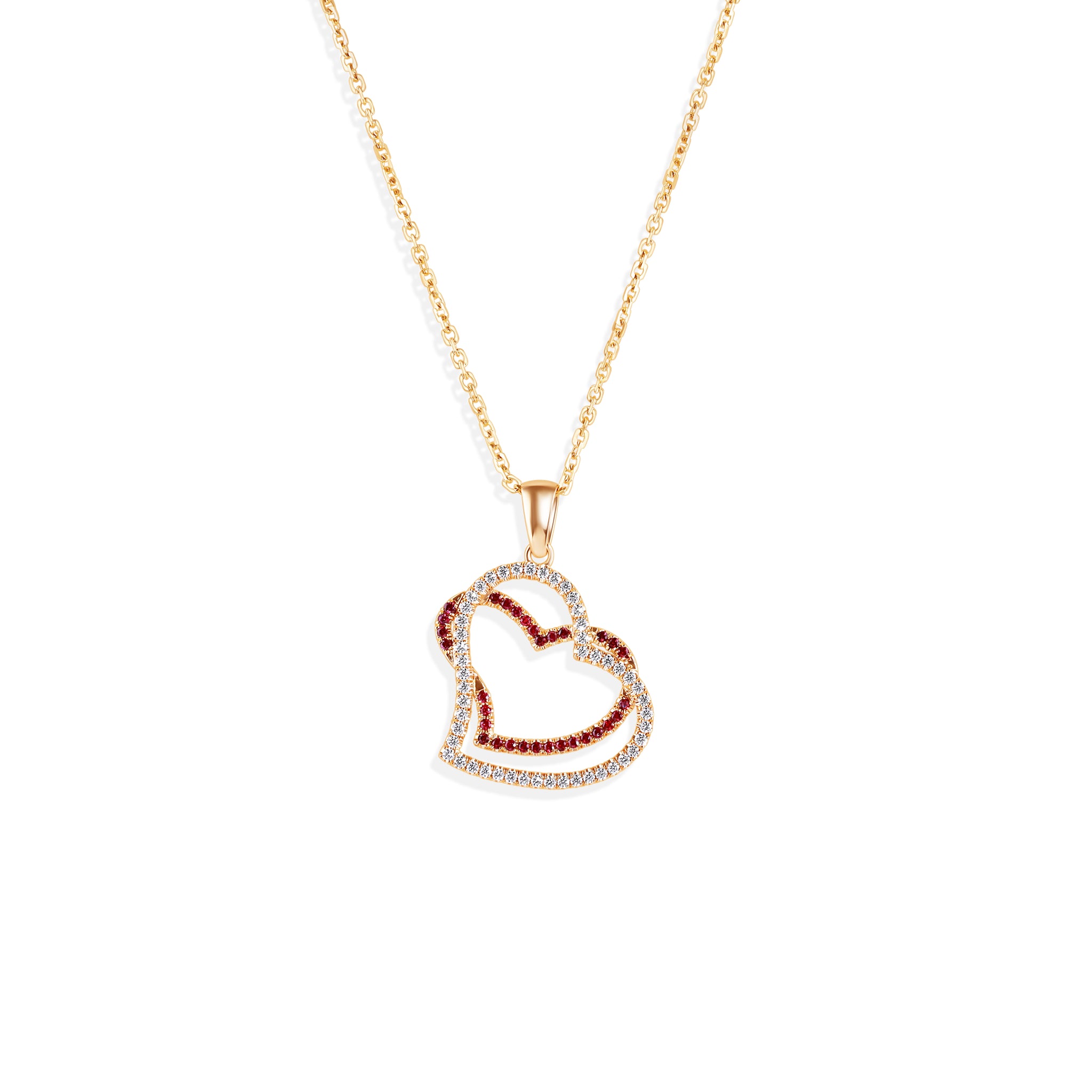 • Load image into Gallery viewer, Double Heart Diamond & Ruby Necklace