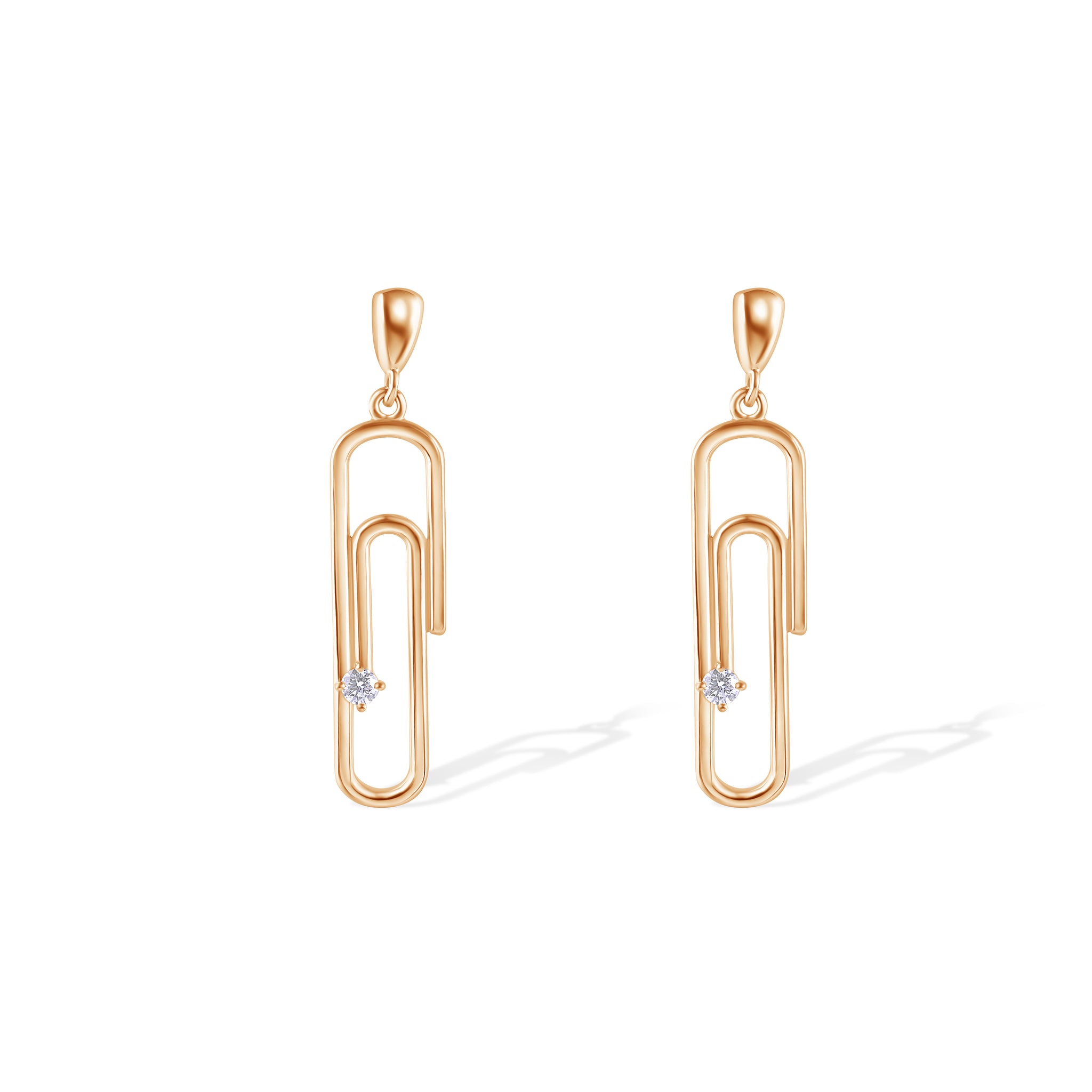 14k Gold Paperclip Dangle Earrings With Two Round Brilliant Diamonds 0.07ct Of F Color, VS1 Clarity